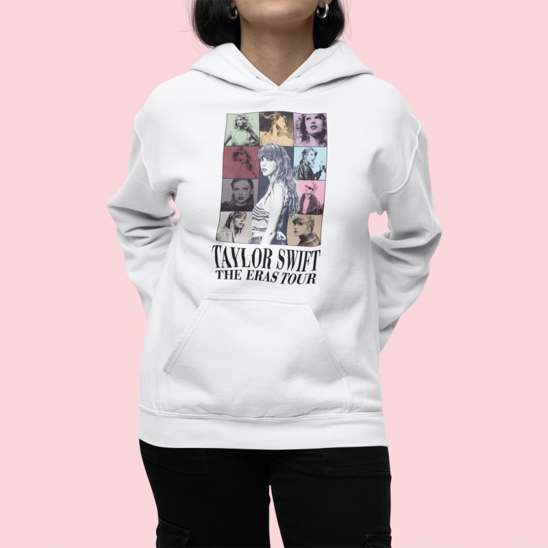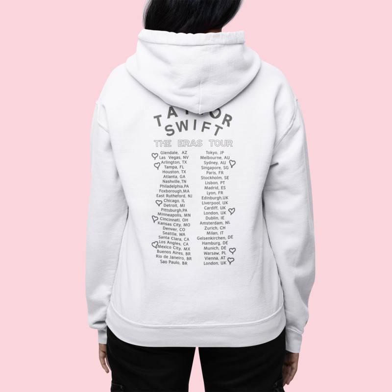 ›(Unisex) φούτερ με κουκούλα (Hoodie) με εκτύπωση 2 όψεων φωτογραφικό κολάζ της γνωστής τραγουδίστριας Taylor Swift εμπρός και πίσω ημερολόγιο την περιοδία της The eras tour.