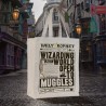 ›Τσάντα tote, βαμβακερή , χωρητικότητας 16t με εκτύπωση σχέδιο Harry potter και πιο συγκεκριμένα εξώφυλλο από την εφημερίδα Daily Prophet και άρθρο "Wizardry world open to Muggles".