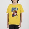 ›Unisex, crew neck, kids tee with chest print cartridge label of retro video game title Super Mario Bros 3.